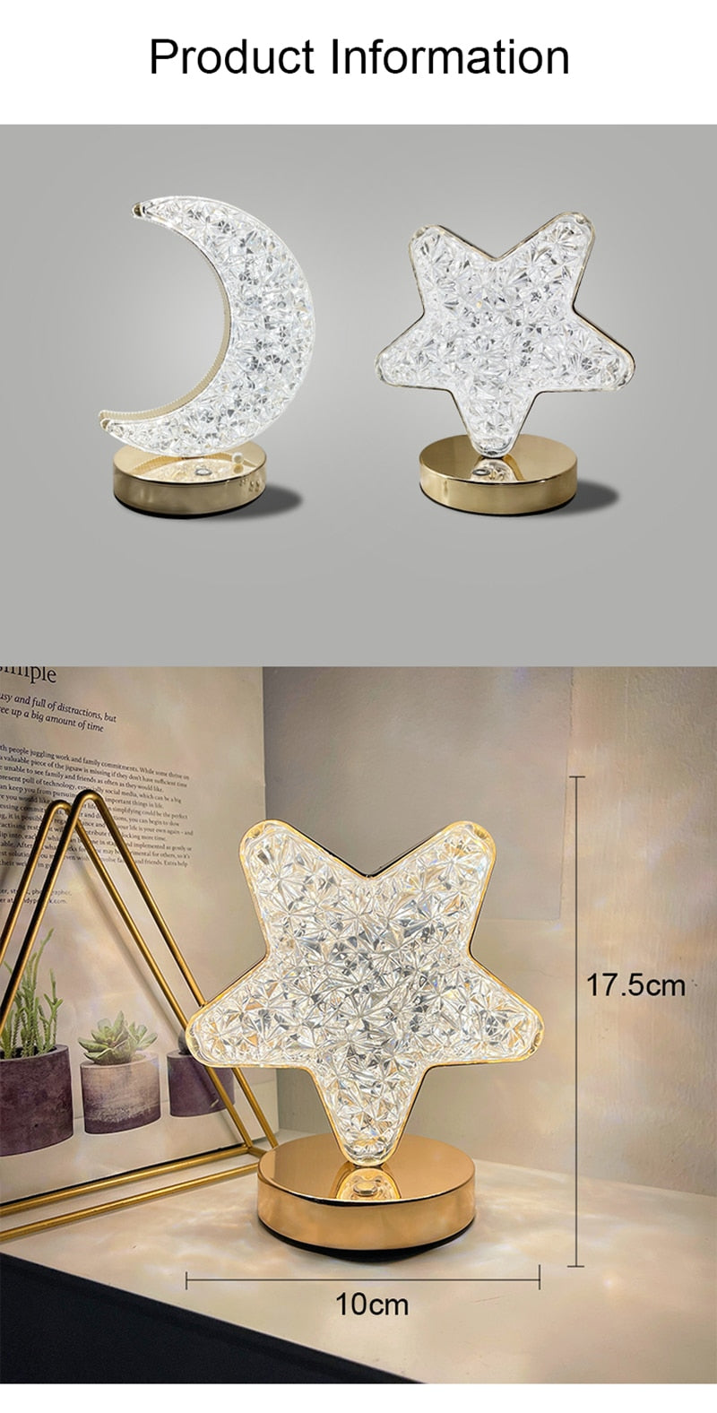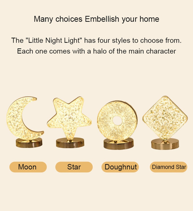 Com interruptor de toque, você pode facilmente alternar entre as diferentes cores de luz e ajustar o brilho de acordo com as suas preferências. E o melhor de tudo é que você pode escolher entre o abajur estrela e o abajur lua, ou até mesmo escolher os dois para ter uma decoração ainda mais encantadora.