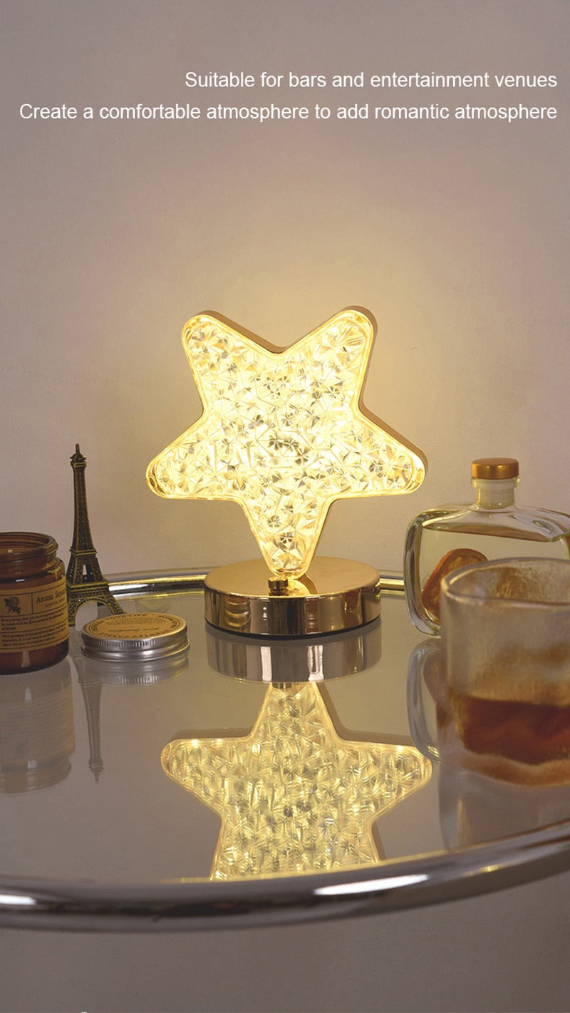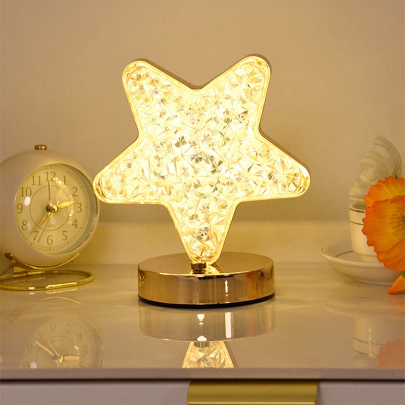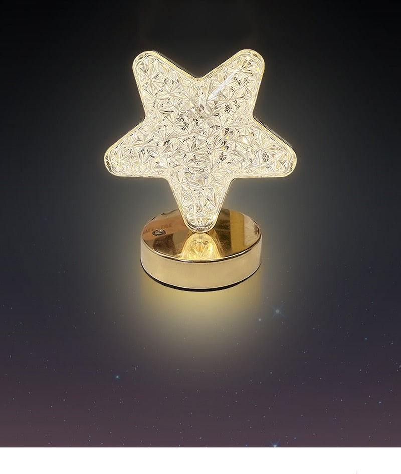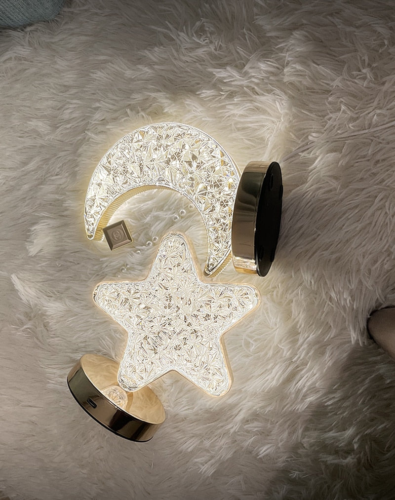 Estes elegantes abajures dourados são feitos de acrílico e ferro, e apresentam sombras em formato de estrela e lua para um toque único e encantador.